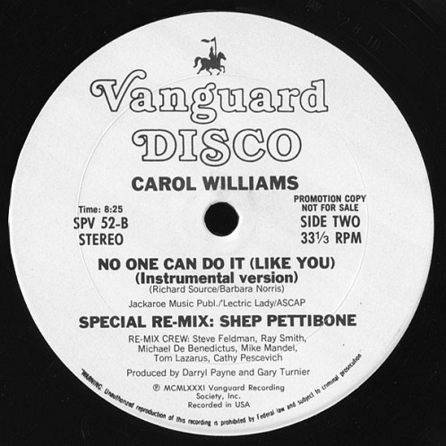 Carol Williams - No One Can Do It (Like You) Special Re-Mix:Shep Pettibone 12"