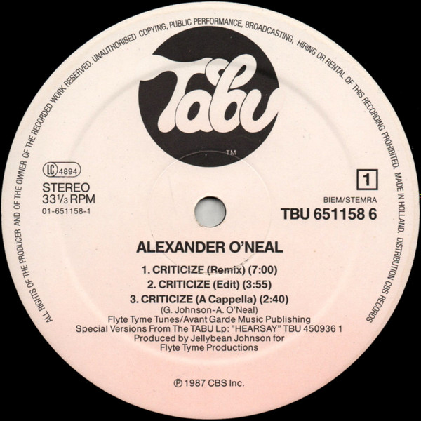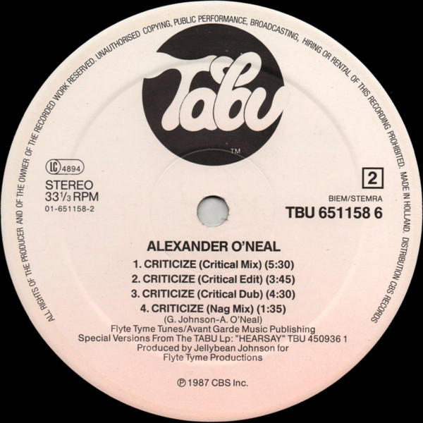 Alexander O'Neal - Criticize (Special 12" Mixes) 12"