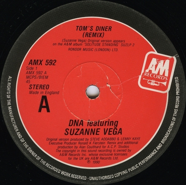 D.N.A.Featuring Suzanne Vega - Tom's Diner (Remix) 12"